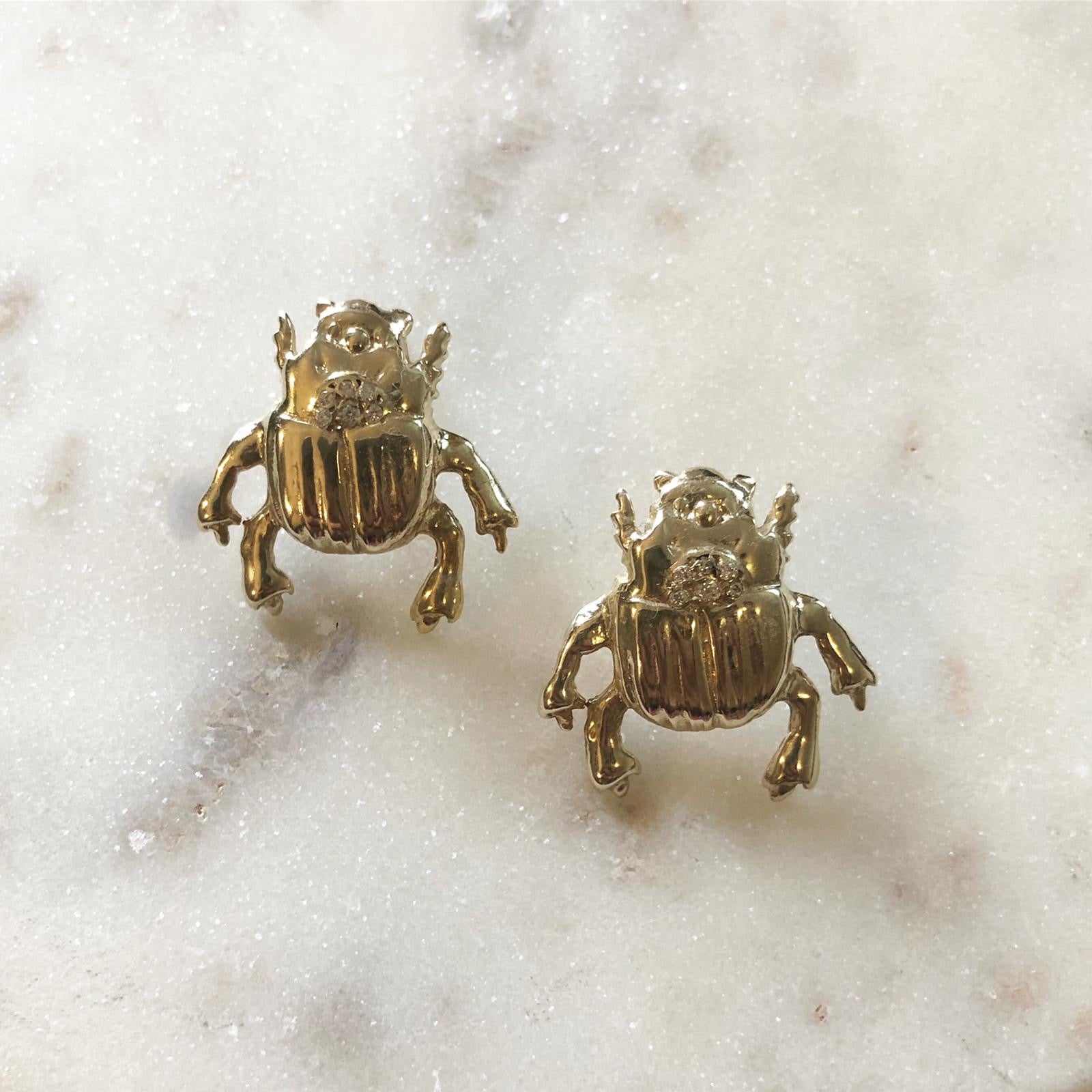 Gold Plated Sterling Silver Beetle Earrings